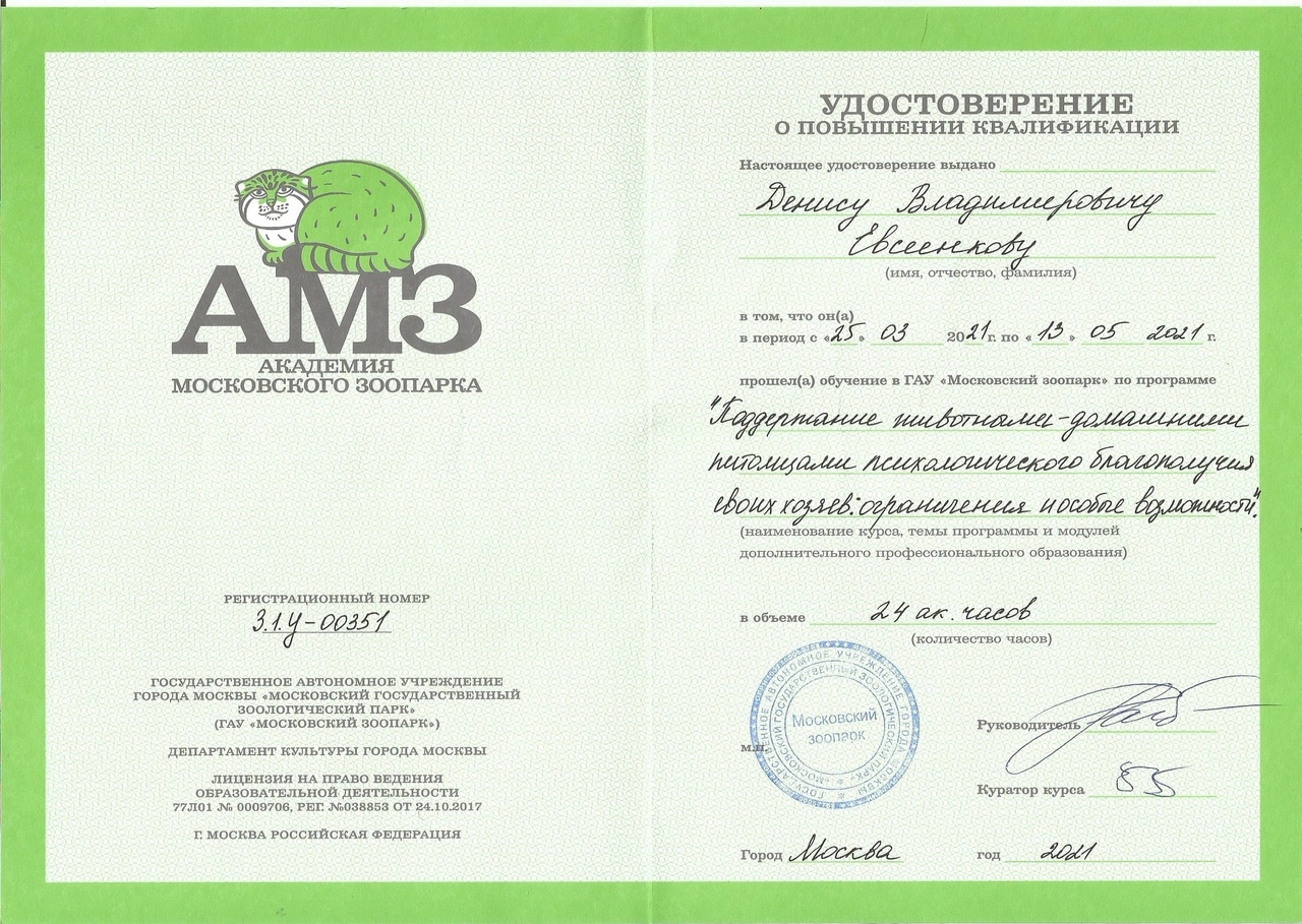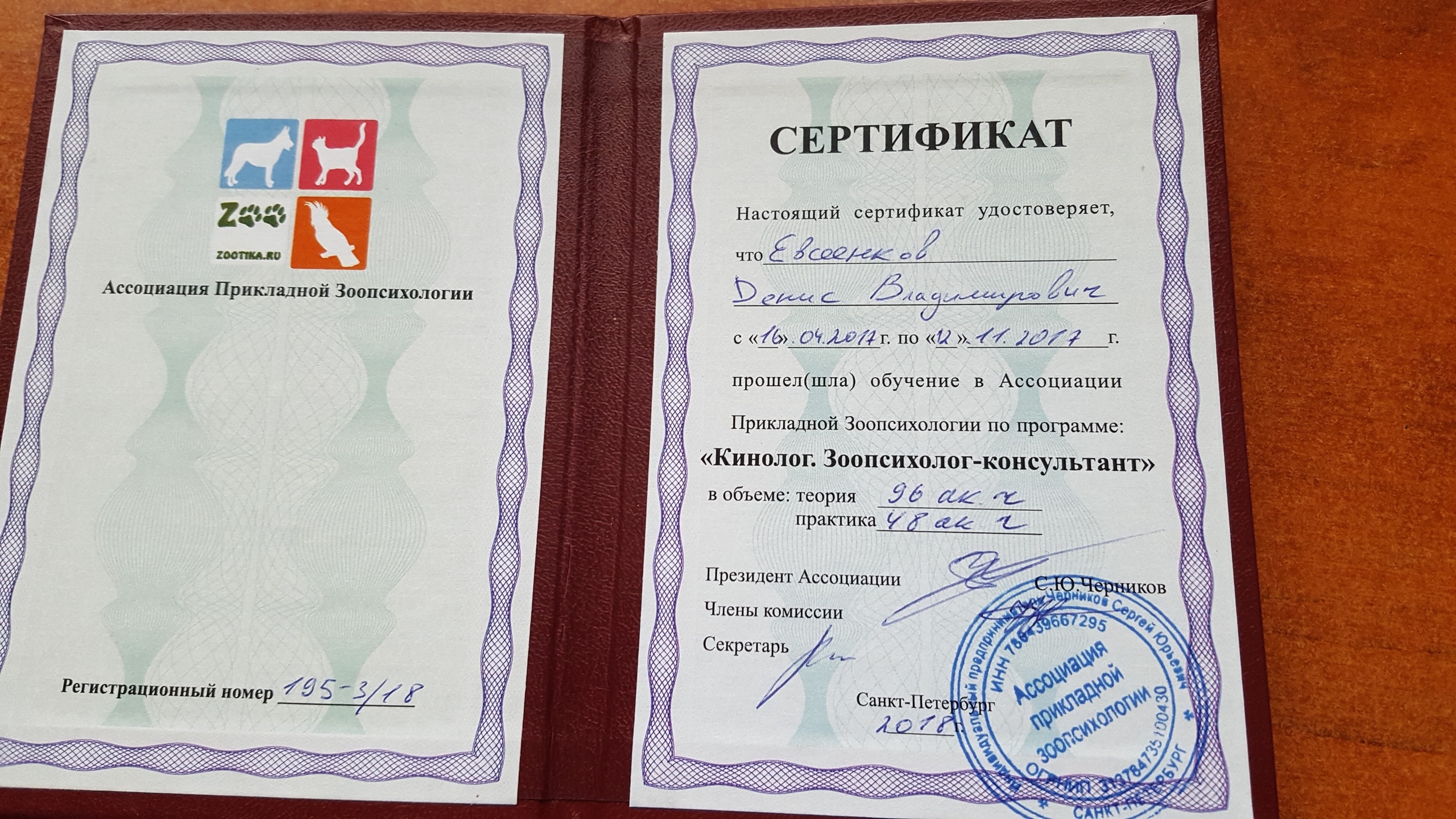 Ассоциация Прикладной Зоопсихологии, СПб - "Кинолог. Зоопсихолог-консультант"
